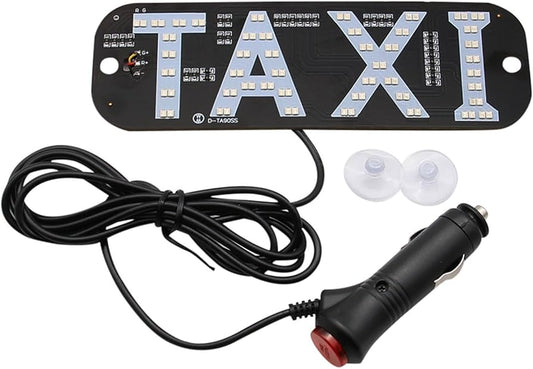 Taxi White LED Light Logo Plate w Car Charger 5x19 cm